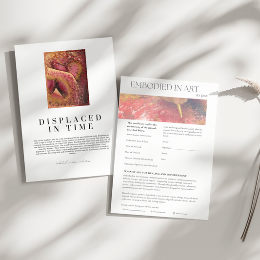 Embodied in Art by Jess blends original artwork with creative therapy to transform personal stories into pieces that heal, educate, and empower women. Each collection - and every personal commission - invites dialogue, fosters connection, and ensures no one feels alone.